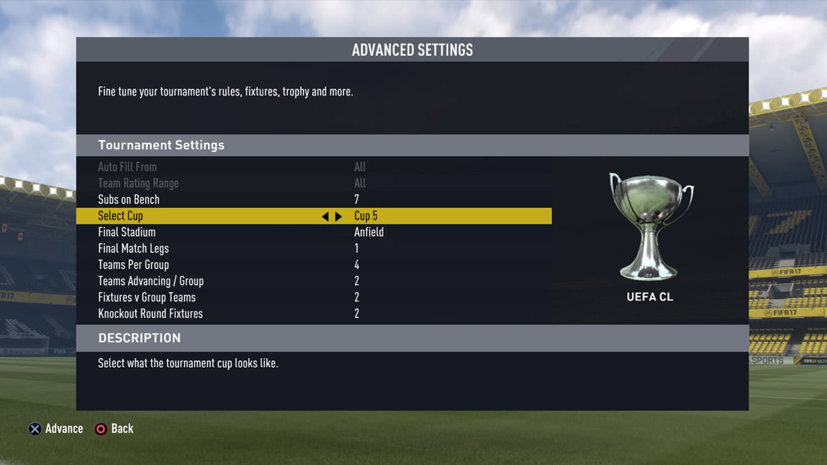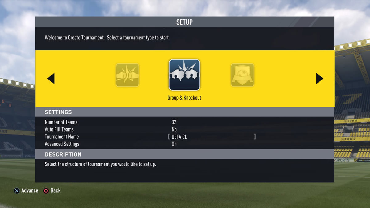 After this, you can start setting up your UEFA CL tournament in FIFA 17 by following the steps given below: