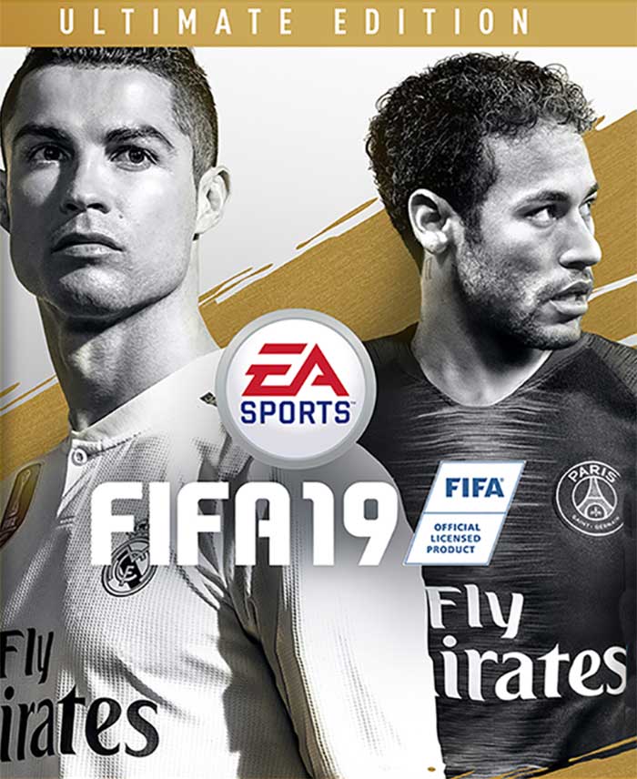 FIFA 19 covers (cover shots) for all platforms, featuring Cristiano Ronaldo as the main and Neymar as the secondary cover star.