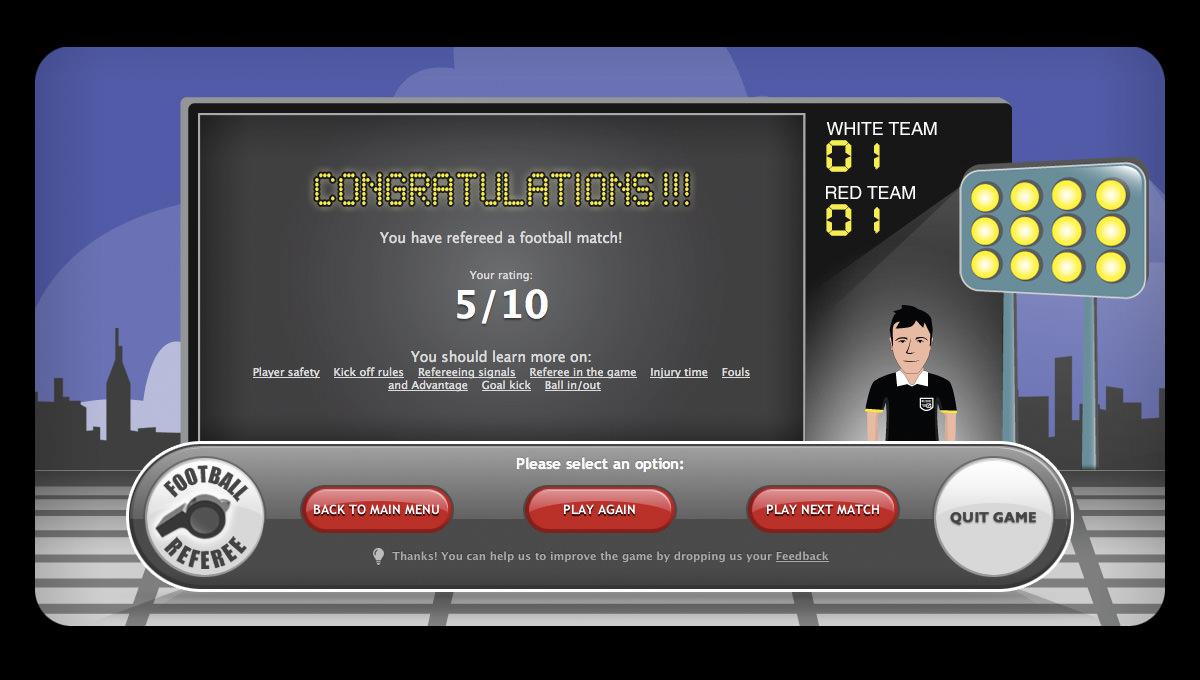 Your ranking after refereeing a match – You need to be qualified to referee the next match