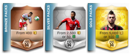 A pack in FIFA Ultimate Team is a group of cards which could contain players, consumables and other FUT items. Packs are available to trade in FUT Store and are usually colour coded (categorised) by their contents value. To find FUT 14 packs, you can go to FU 14 > Store > Browse Packs.